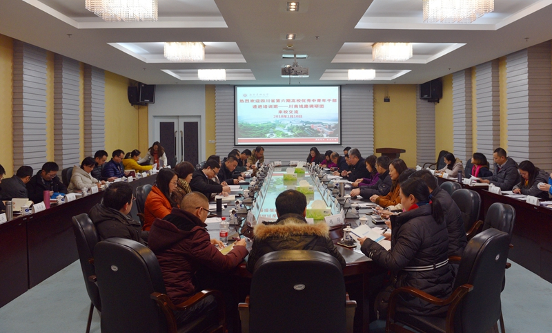 1月10日上午,四川省高校第六期优秀中青年干部递进培训班——川南线路调研团来校考察调研座谈会在城北校区逸夫图书馆第五会议室召开,副校长何涛,党委办公室、校长办公室、组织部、党委宣传部、发展规划处、人事处等相关职能部门负责人参加会议。座谈会由发展规划处处长刘克林主持。