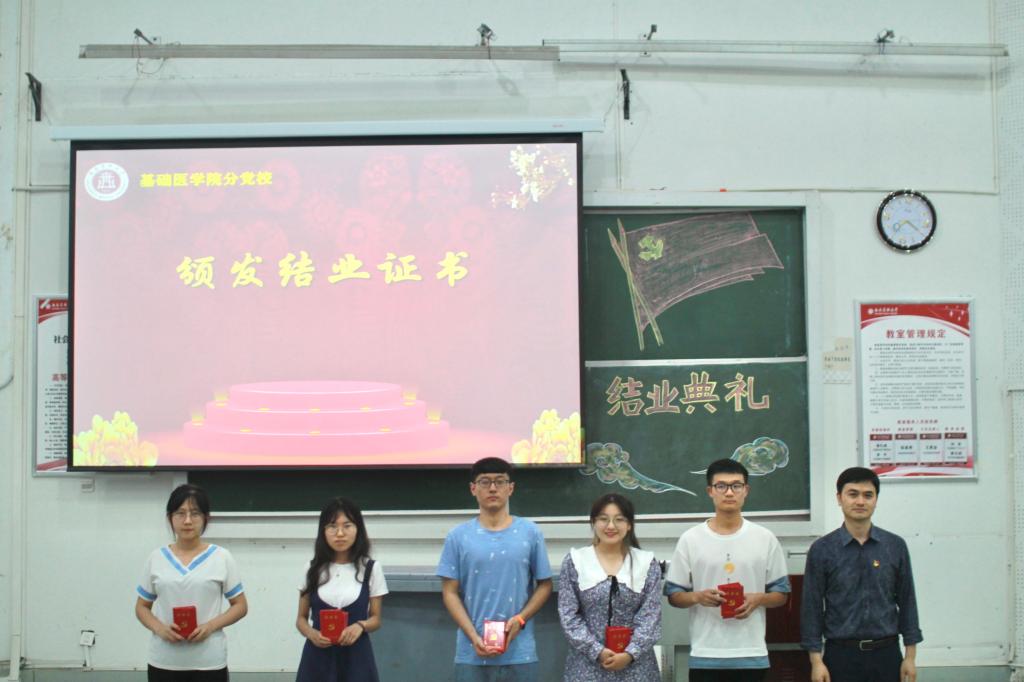 典礼开始,全体人员起立高唱国歌。学员代表2019级学生何素兰讲述了自己在党课期间的学习收获和体会,基础医学院分党校办公室主任王旭利作培训工作总结。曾永秋宣读表扬决定后,颁奖嘉宾为党校学员领发结业证书、获奖证书。