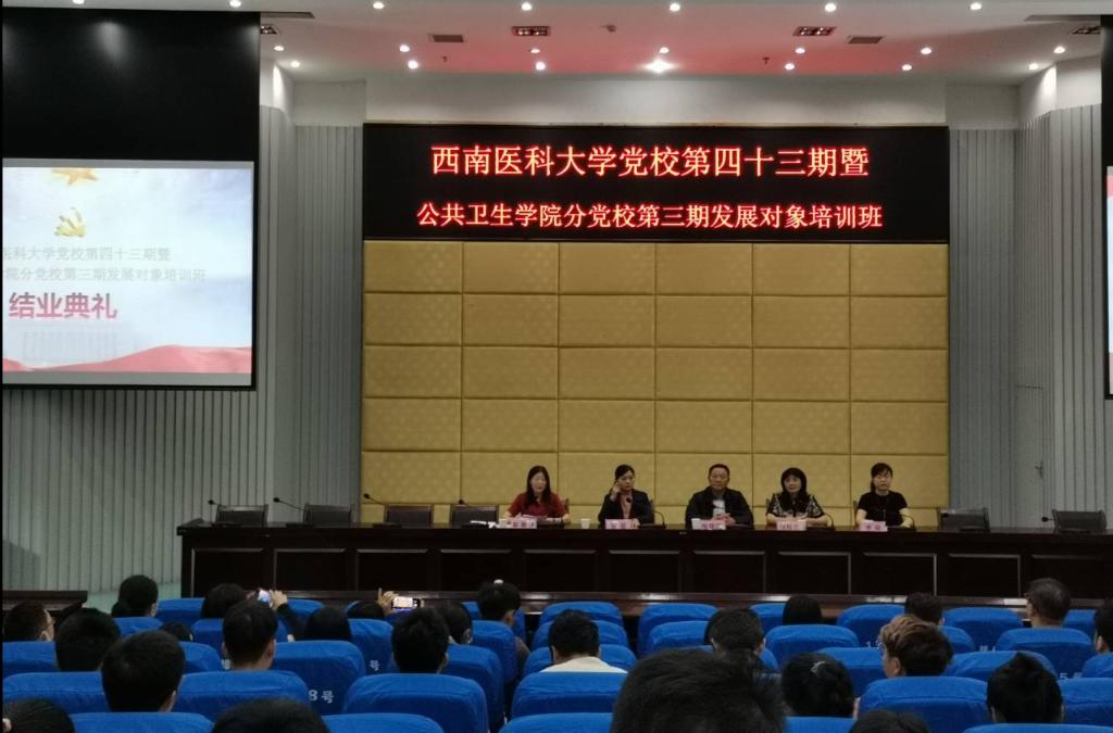 5月29日上午,ok138cn太阳集团529党校第四十三期暨公共卫生学院分党校第三期发展对象培训班在逸夫图书馆学术报告厅举行结业典礼。公共卫生学院分党校校务委员,指导教师,培训班学员参加了结业典礼。结业典礼由公共卫生学院分党校校务委员、学生科科长彭丽冰主持。