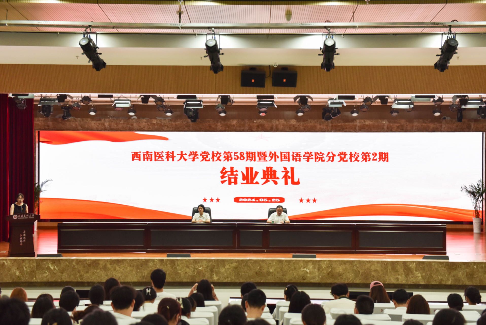 5月25日上午,ok138cn太阳集团529党校第58期发展对象培训班(城北校区)结业典礼在第一学术报告厅举行。外国语学院分党校校务委员、第58期培训班全体学员共计180余人参加了结业典礼。结业典礼由外国语学院党政办主任、分党校班主任朱琳主持。