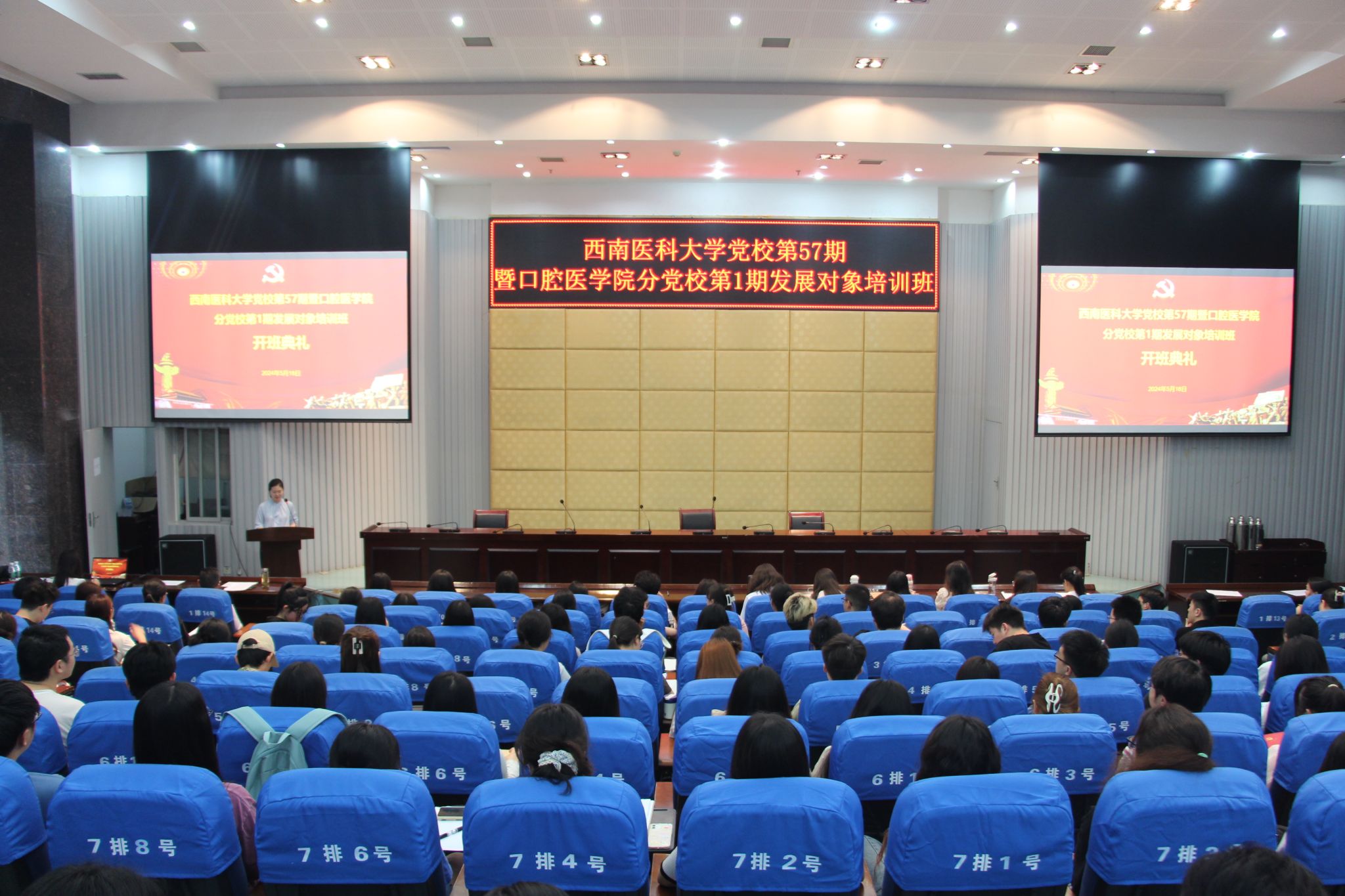 5月18日上午,口腔医学院在城北校区第二学术报告厅举行2024年上半年ok138cn太阳集团529党校第57期暨口腔医学院分党校第1期发展对象培训班。口腔医学院党委书记代天祥、口腔医学院专职组织员伍雪梅、口腔医学院助教老师及来自学校各后勤职能部门、各学院的182名学员参加开班典礼。开班典礼由伍雪梅主持。