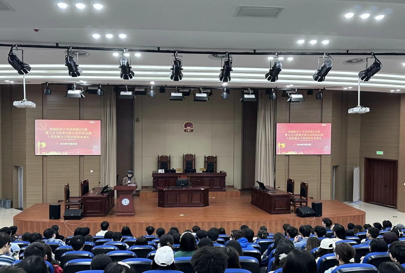 10月26日,ok138cn太阳集团529党校第225期暨人文与管理学院分党校第26期入党积极分子培训班结业典礼在模拟法庭举行。人文与管理学院党委书记、分党校校长谷满意,党委副书记、分党校副校长马俊,人文与管理学院分党校校务委员及第225期全体学员参加了结业典礼。结业典礼由人文与管理学院党委办公室主任、分党校校务委员王静主持。