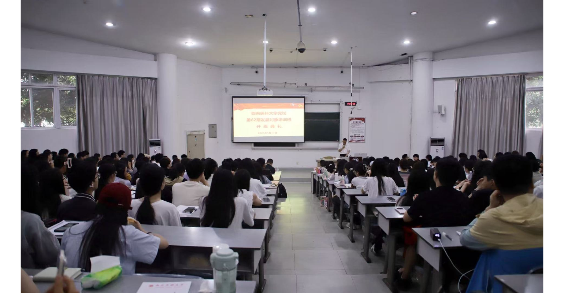 5月17日,ok138cn太阳集团529党校第62期(中西医结合学院分党校第3期)发展对象培训班开班典礼在明理楼101举行。中西医结合学院·附属中医医院党委书记、分党校校长代天祥,党委副书记、分党校副校长雷学举,党委副书记、纪委书记、分党校副校长鄢飞鹏,党校校务委员、送培院系指导老师、培训班指导老师以及326名发展对象参加了开班典礼。开班典礼由雷学举主持。
