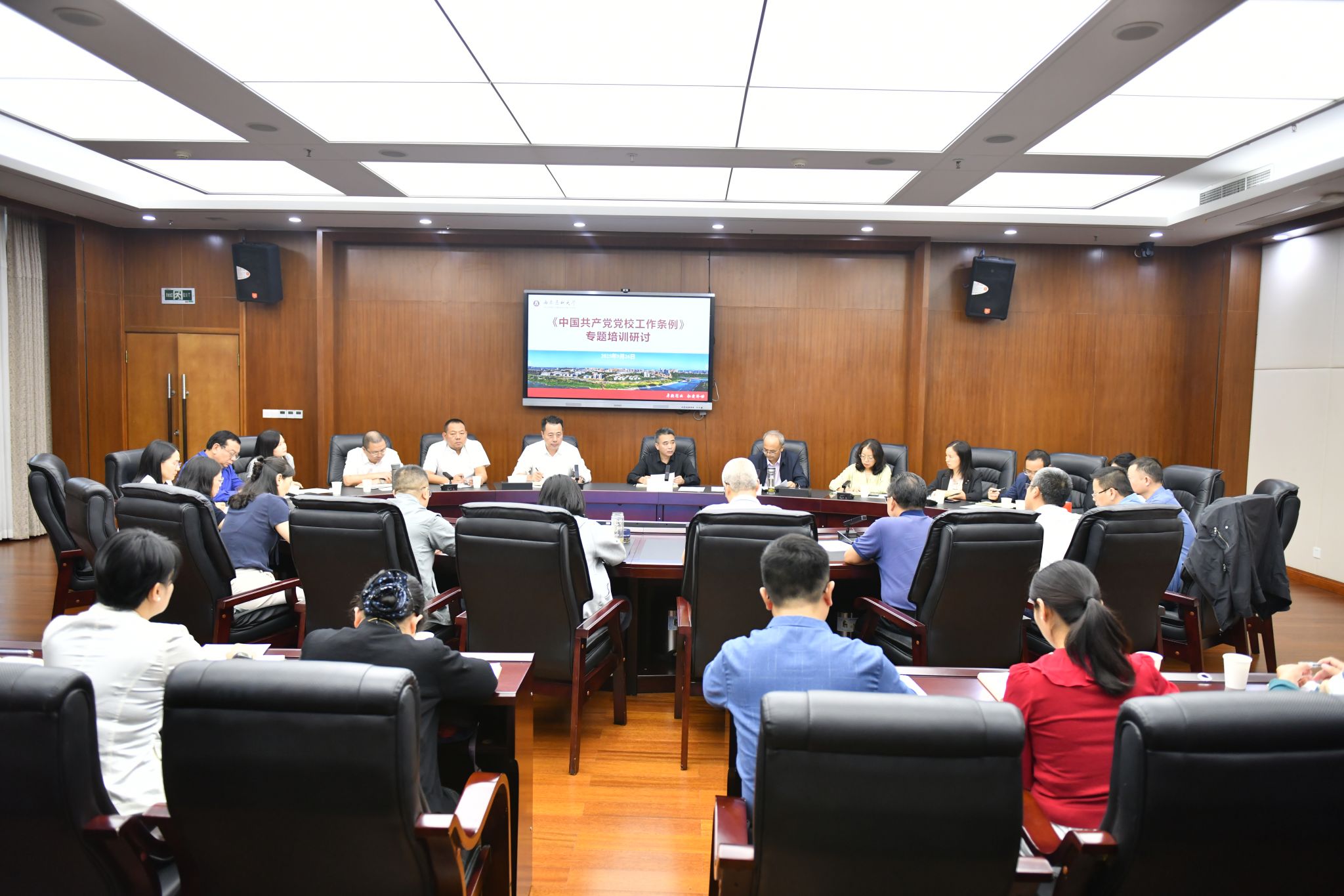 9月26日下午学校党校在城北校区第一会议室召开《条例》专题培训研讨会。学校党委副书记蒋通荣出席并讲话,各二级党组织书记、党校办公室成员、各分党校校长及校务委员代表参加研讨。会议由学校党委常委、党校副校长柏珂主持。