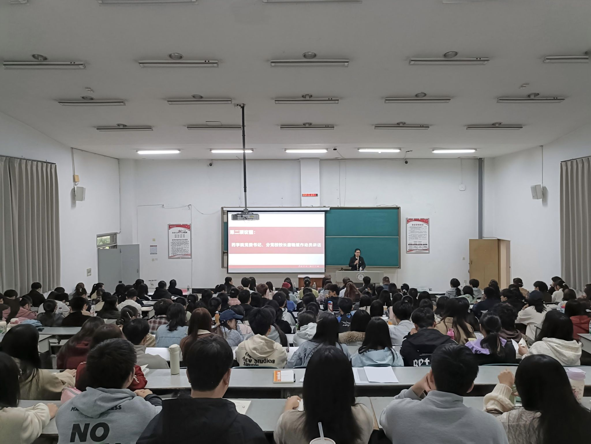 药学院党委书记、分党校校长唐艳斌作开班动员讲话,她向全体学员提三点希望和要求:提高思想认识,深刻把握入党积极分子培训的重要意义;注重学用结合,确保培训取得实实在在的效果;严格自我要求,圆满完成本次培训学习任务。2022级临床药学1班的李墨弦作为学员代表作表态发言。他表示,学员们在培训中能端正态度,潜心学习,深入思考,学以致用,互相促进,共同提高。最后,班主任李云巧介绍了本期培训班的基本情况及相关要求。