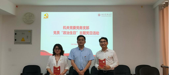 6月11日下午,机关党委党务支部在德诚楼612会议室开展党史学习教育专题学习分享会暨党员“政治生日”主题党日活动。本次活动由组织部副部长、支部书记姚小东主持。