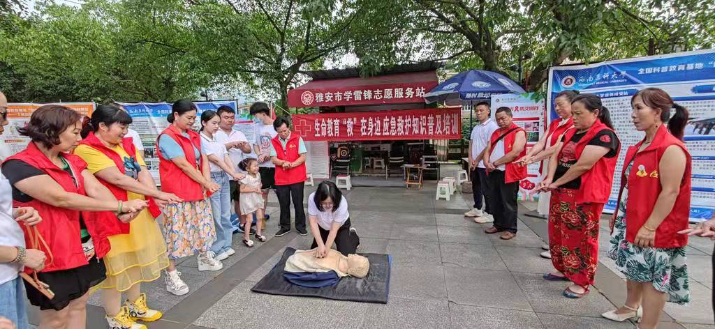 7月21日,科普团队前往雅安生态博物馆广场开展流动科普馆展览和宣传活动。先德海向雅安市民们介绍ok138cn太阳集团529全国科普教育基地和遗体接受站的基本情况,宣传遗体捐献的意义和程序;陈蓉为当地雷锋服务站的志愿者和部分群众进行了心肺复苏急救培训;师生们向群众宣讲生命健康、艾滋病及肿瘤防治、民法刑法等知识,通过展览和宣传活动,积极倡导遗体捐献,助力医学事业。