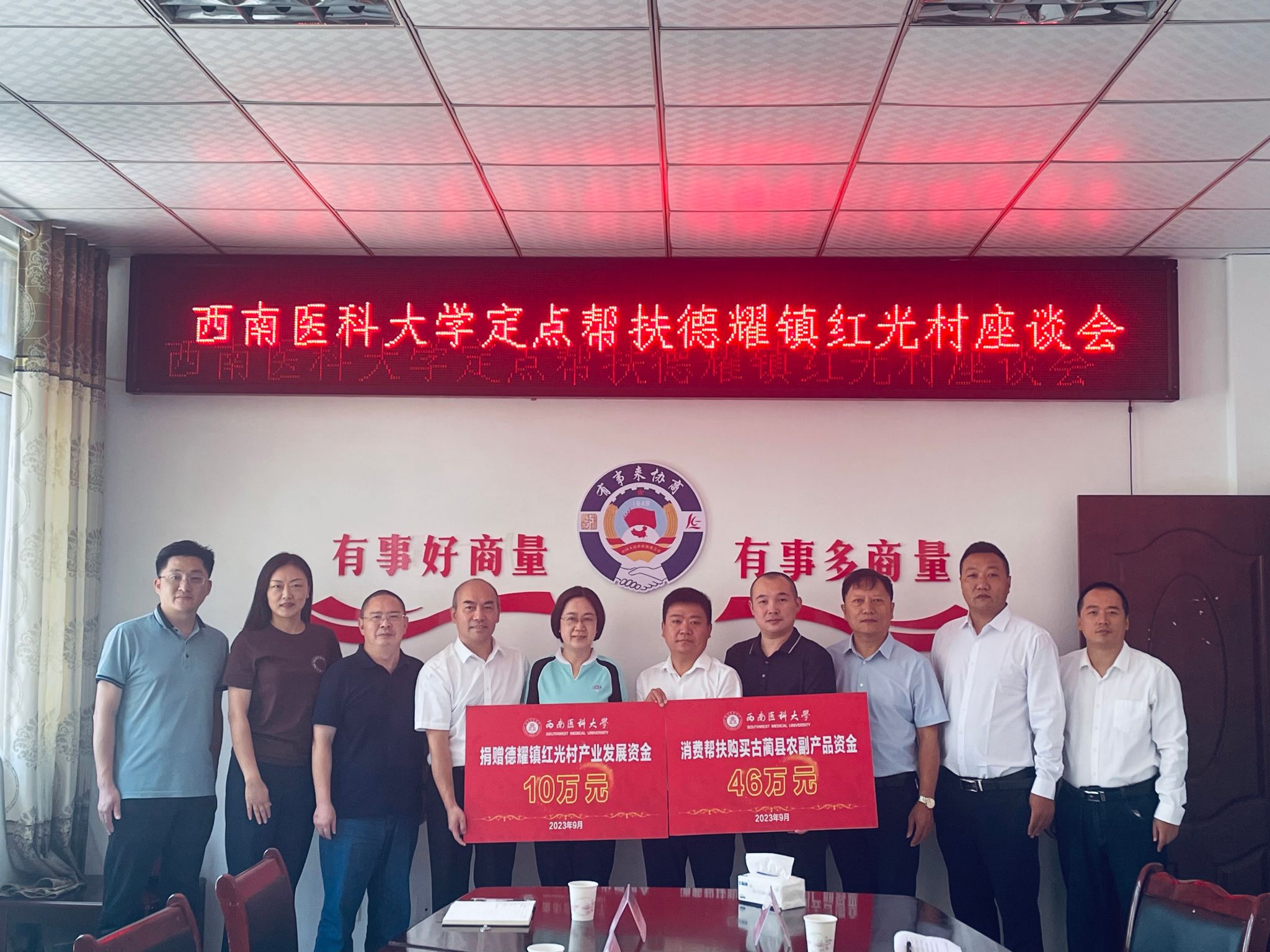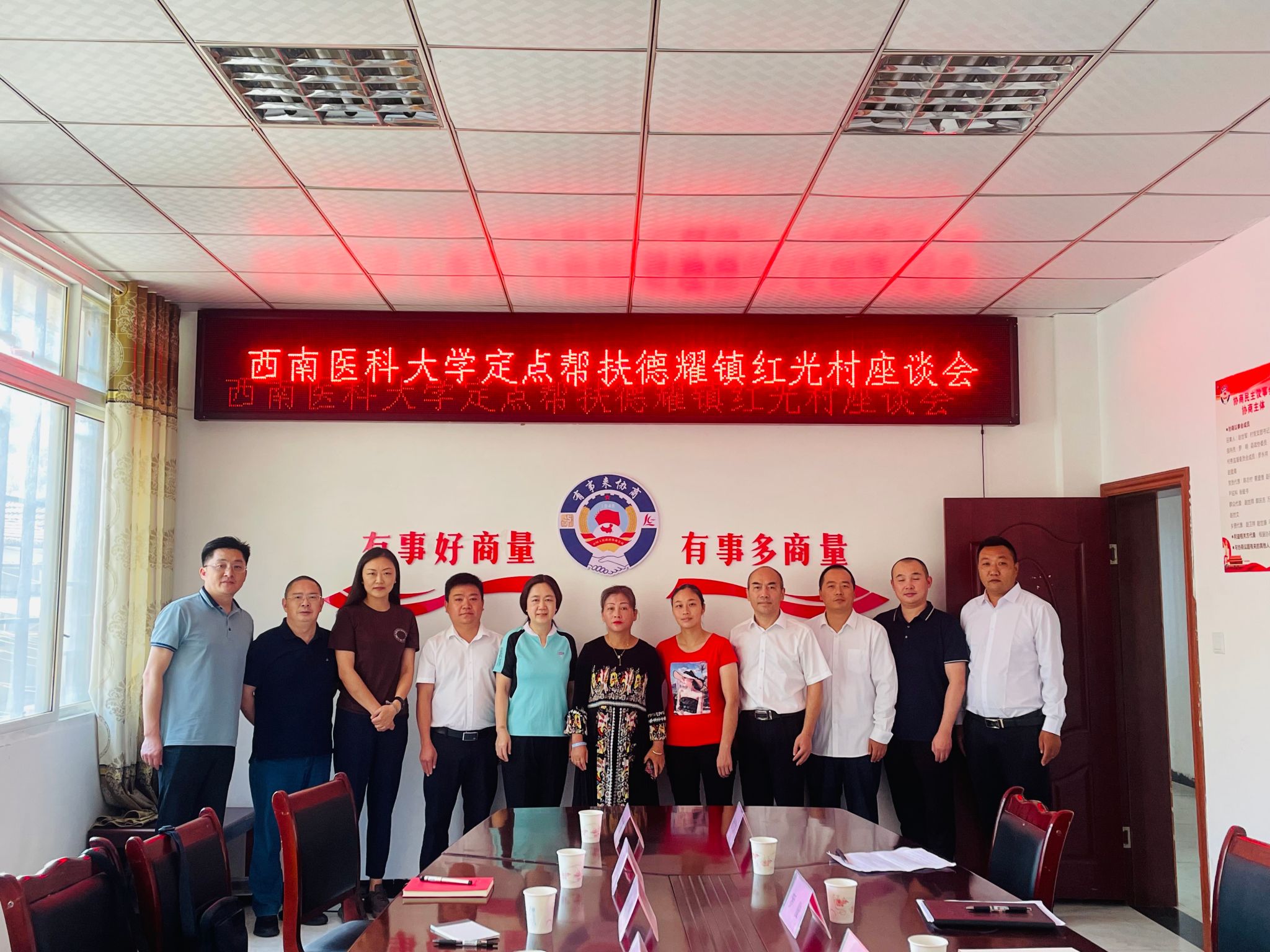 在座谈会上,原驻村第一书记罗俊汇报了驻村期间工作。新任驻村第一书记侯杰荣作了任职表态发言。古蔺县德耀镇党委副书记万正敏对学校两年来的帮扶工作开展情况和帮扶成效进行了高度赞扬,特别感谢学校充分发挥自身教育和医疗优势,用心用情服务群众,为红光村巩固拓展脱贫攻坚成果同乡村振兴有效衔接作出了积极贡献。同时感谢我校继续为定点帮扶工作注入新鲜血液。