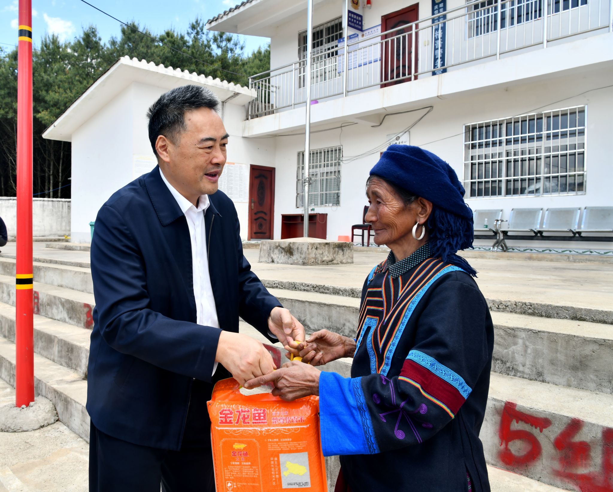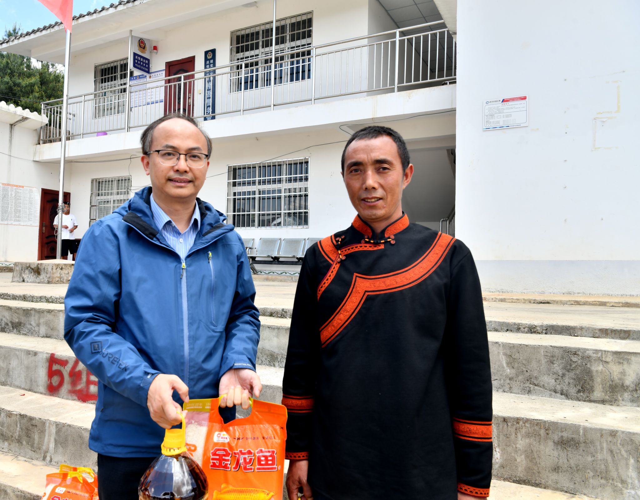 廖斌一行实地调研了新城镇汝地甲古村易地扶贫搬迁集中安置点、村党建活动室,入户走访易地扶贫搬迁情况。慰问监测户拉马铁都,送去米、油等慰问品。拉马铁都表示:“感谢学校和村上协调医院专家对他的诊治和帮助,身体状况有了明显好转,将继续配合治疗,保重身体。”