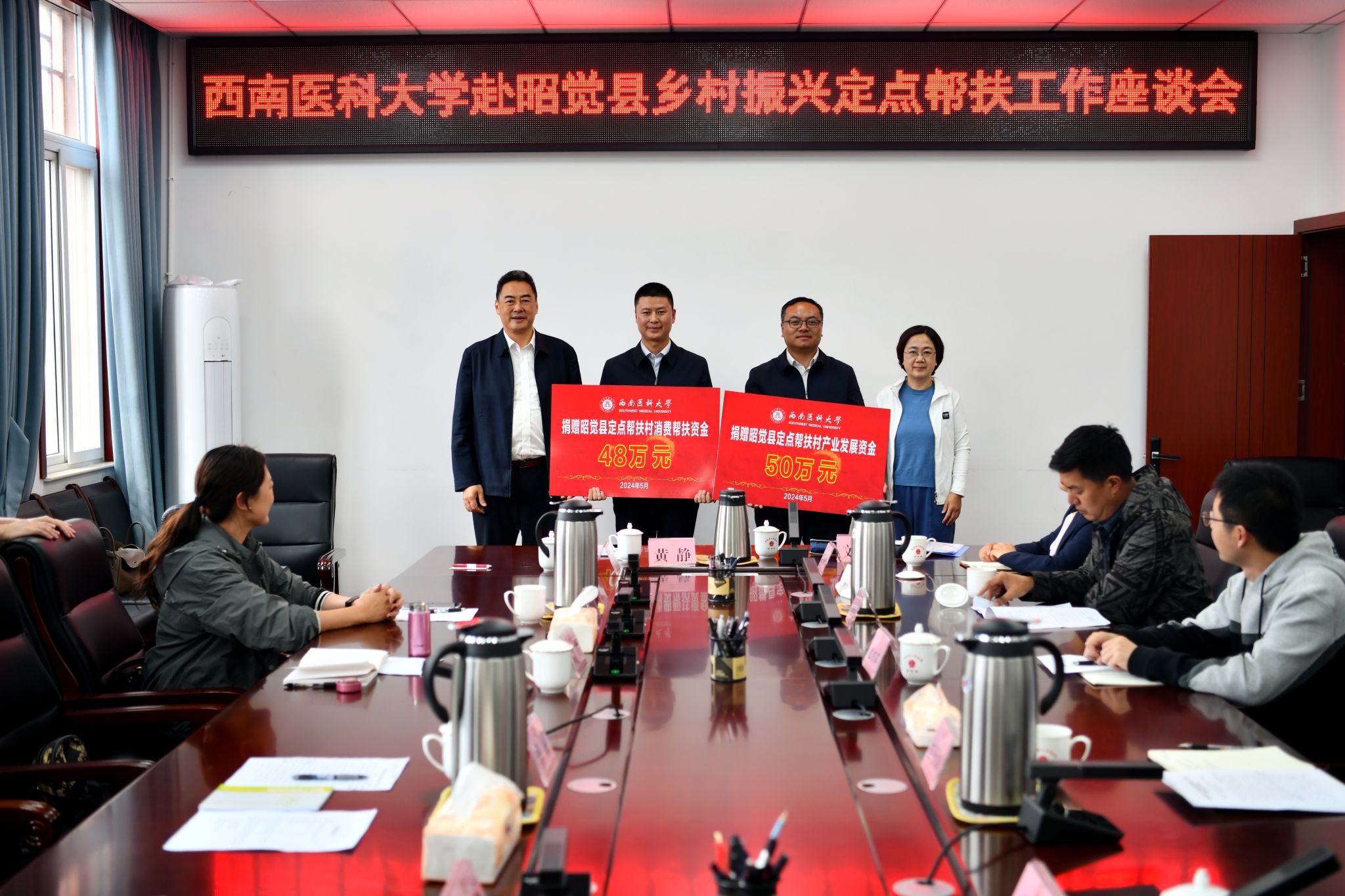 会上举行了捐赠仪式,廖斌、刘毅代表学校向昭觉县捐赠了产业发展基金50万元、消费帮扶资金48万元。