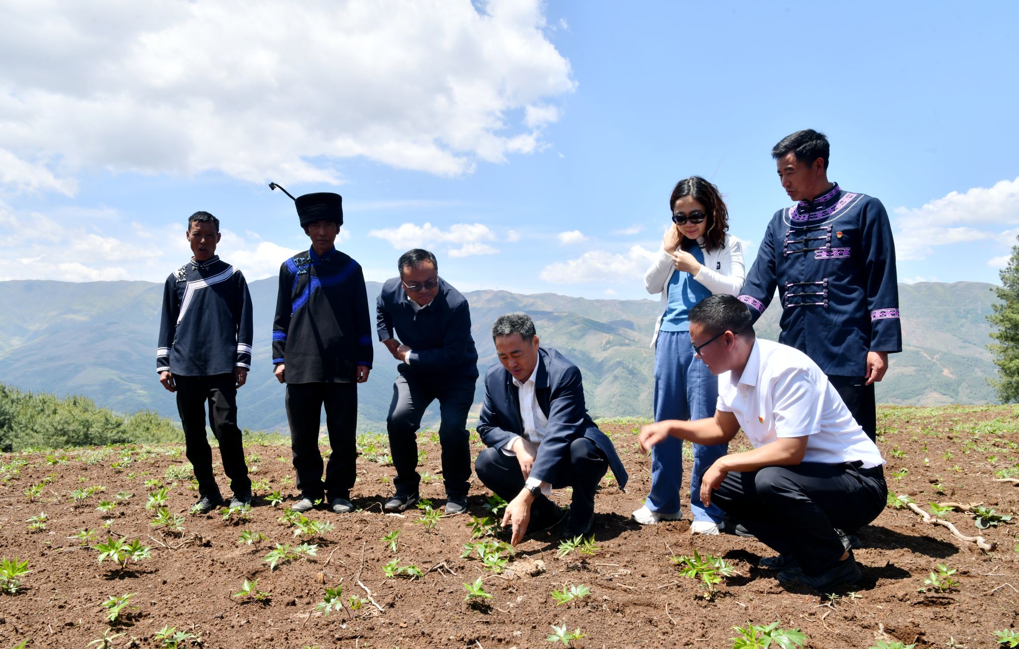 随后,廖斌一行实地调研了特布洛乡格吾村中药材种植基地,详细了解川牛膝、当归、独活等中药材种植情况,对特布洛乡现有产业发展情况进行全面细致了解,在田间地头就产业帮扶助力乡村振兴进行了深入的探讨和交流。为结对帮扶户和村民代表送去了米、油等生活必需品,并详细了解他们生活、生产情况。