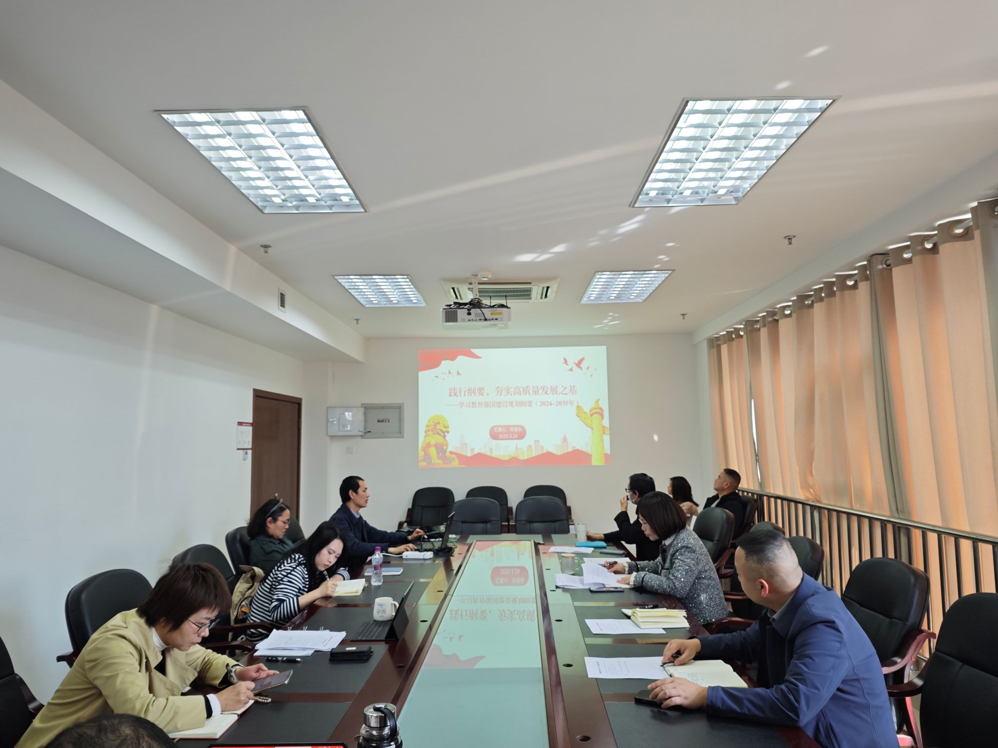 科技处副处长许望东同志以《践行纲要,夯实高质量发展之基》为题,为全体党员上了一堂生动的党课。许望东同志围绕相关纲要,结合科技处实际工作,深入阐述了在新时代背景下,如何通过具体实践推动高质量发展。党课内容丰富、案例鲜活,具有很强的针对性和指导性,让党员们深受启发。